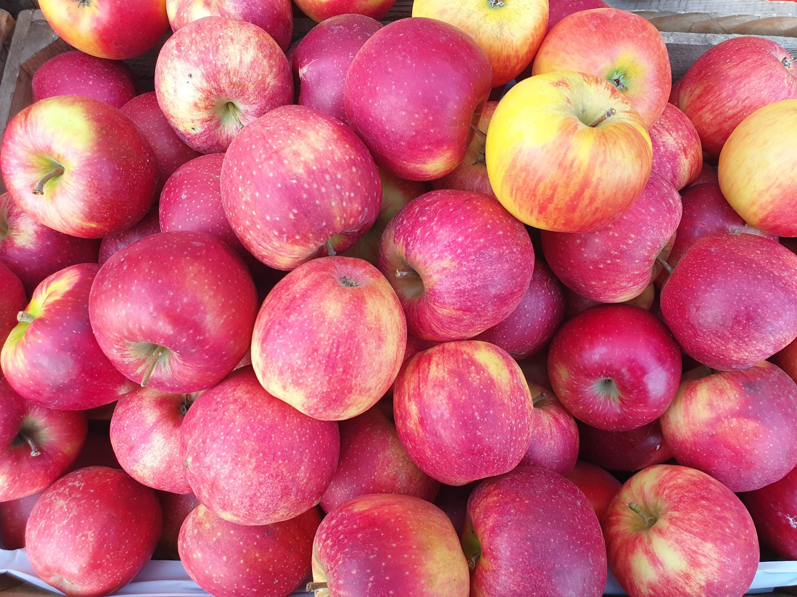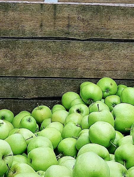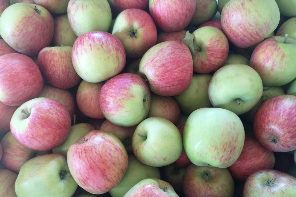 duże, chrupiące jabłka o słodko-kwaskowym smaku i soczystym miąższu.