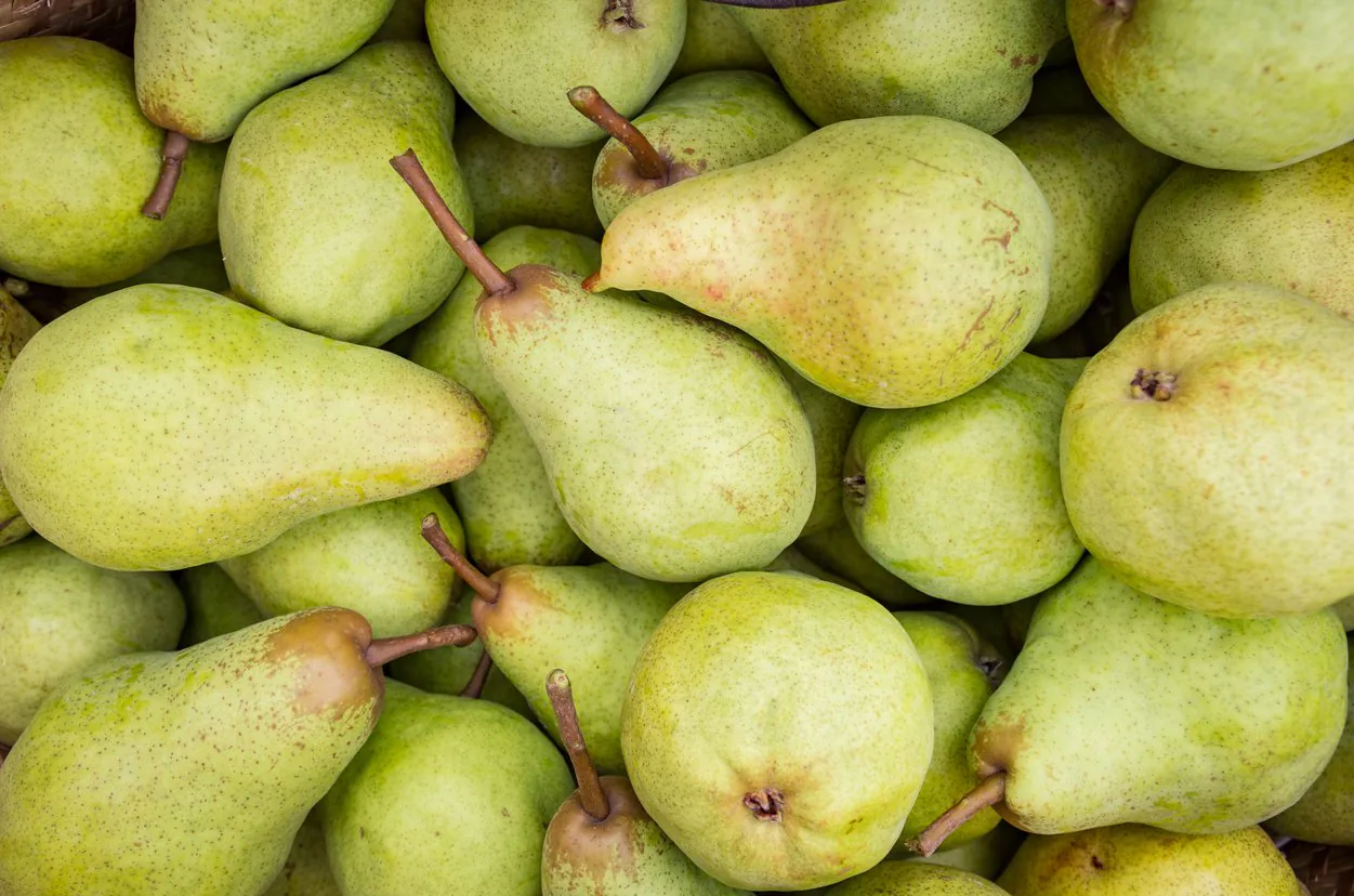 wydłużone, bardzo słodkie i soczyste gruszki o delikatnym, maślanym miąższu.